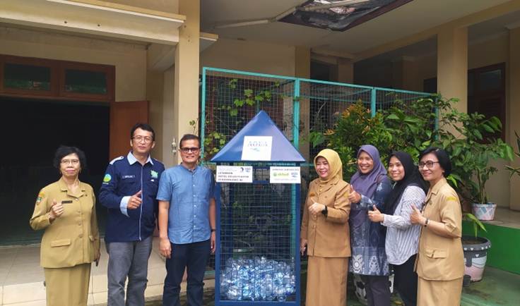 program pilah sampah yang di support danone dengan keranjang khusus botol